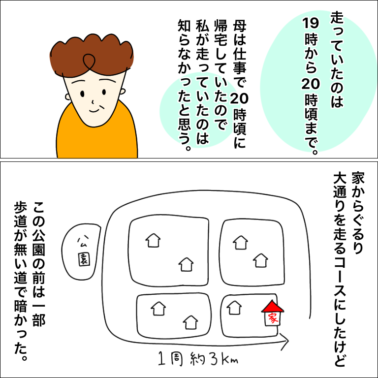 皆様すでに分かっていると思いますが、女の子夜一人のジョギングやウォーキングは大変危険ですので絶対やめてくださいね。