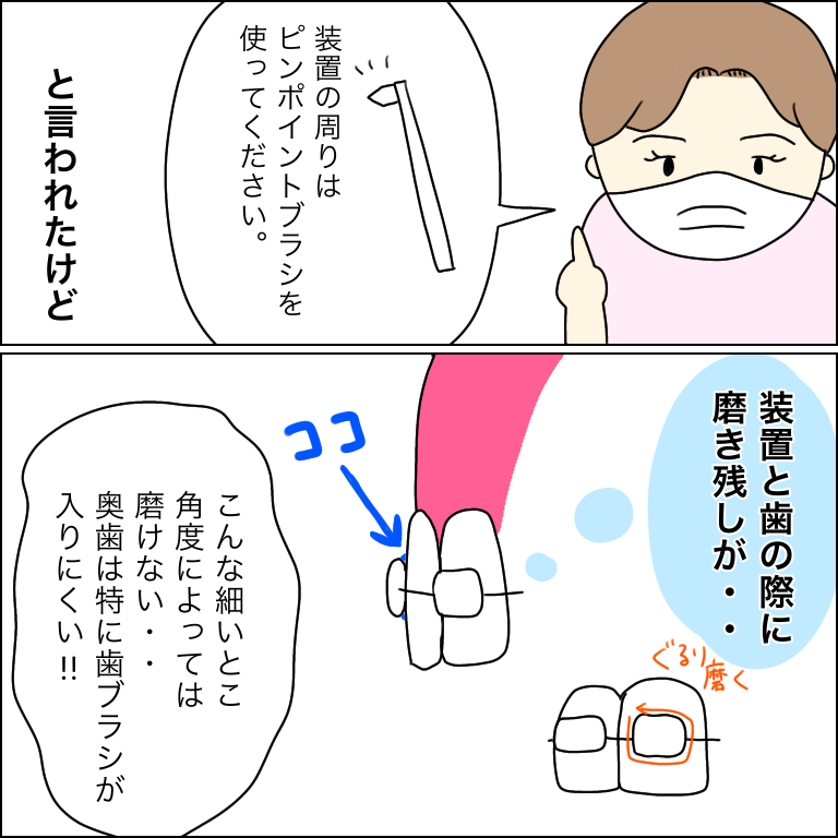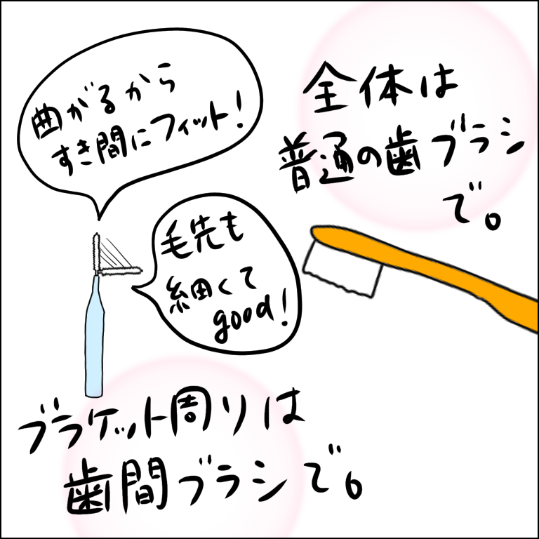 歯間ブラシは毛先も細いし曲がるので縦でも横でも細い隙間に入って磨きやすかったので矯正後半は歯間ブラシを使っていました!