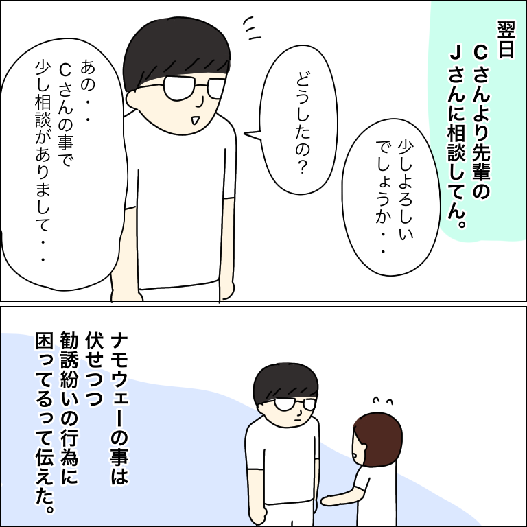 思い切って職場の先輩Jさんに話すもJさんもナモウェー会員。