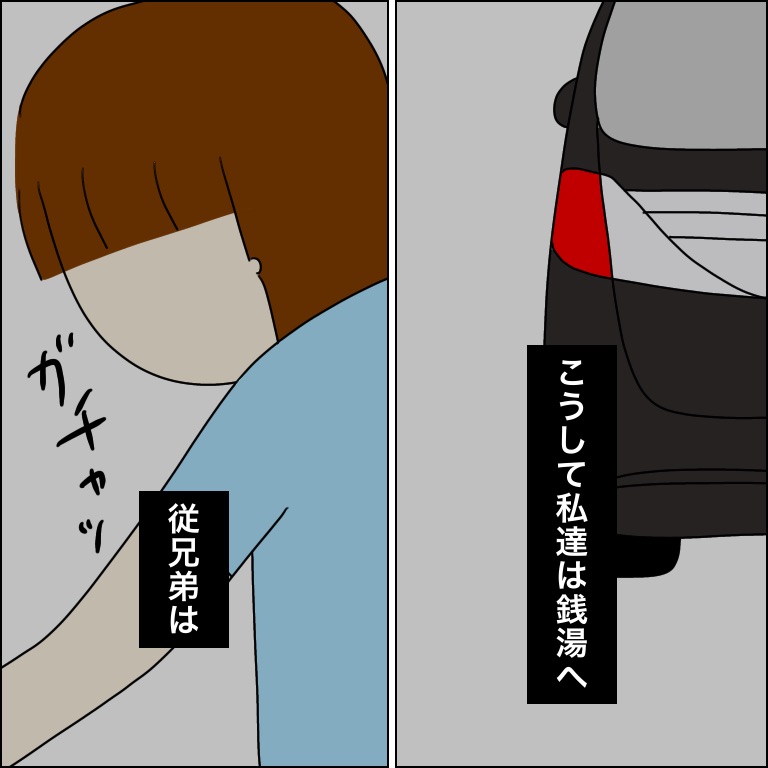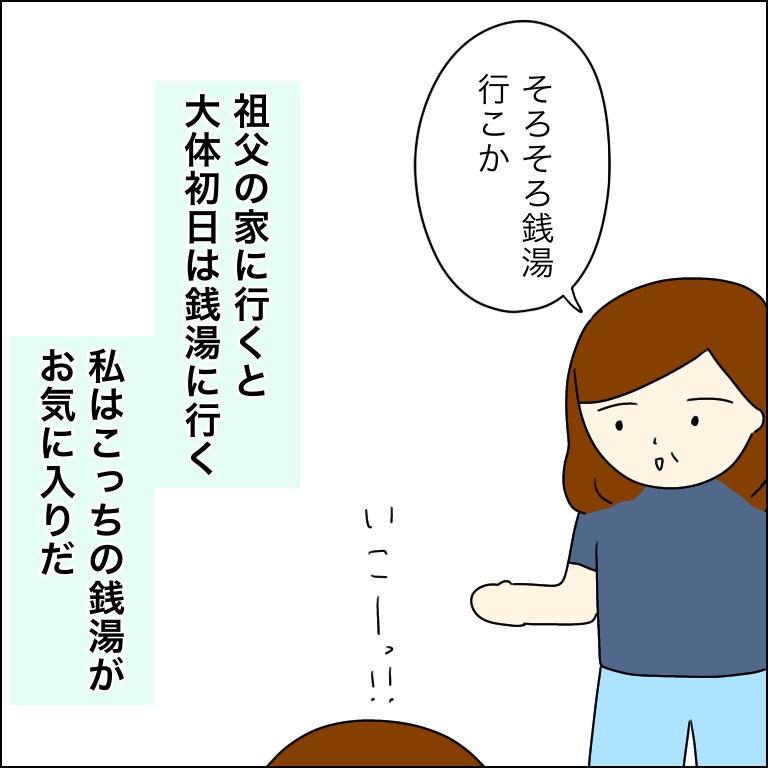 酔った父と従兄弟を置いて女性陣は銭湯へ。
