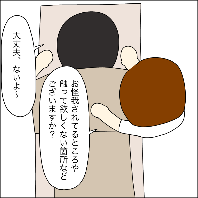 ズボンの紐を結ばせ、腕〜手のひらの施術中に急に手を握ってきて…