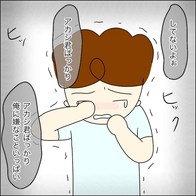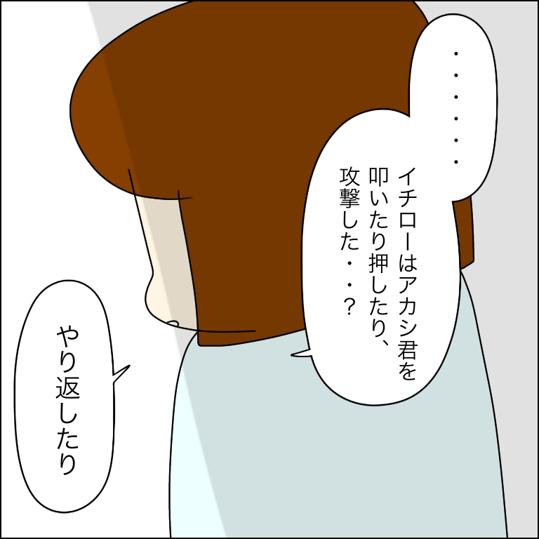 アカシ君を押したり攻撃したか、というのは先生の一言もあり確認のために聞きましたが本人はやっていないと。フラッシュバックでまた泣きながらプチパニックになりました…