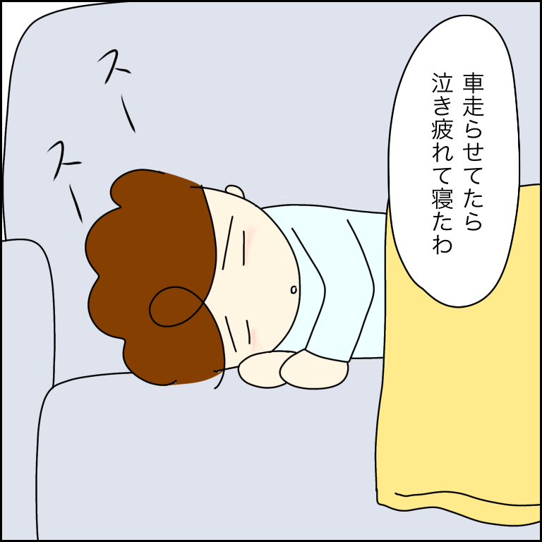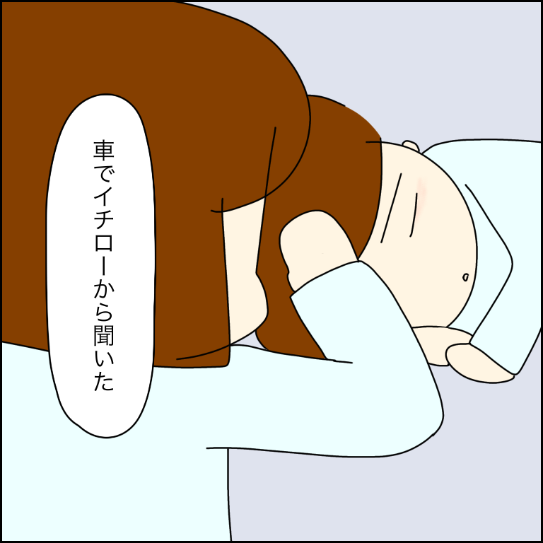 降りるとイチローは泣き疲れてソファーに寝ていました。